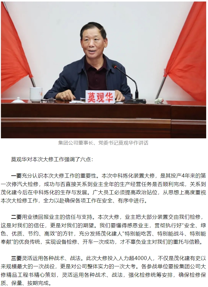 勠力同心擂響戰(zhàn)鼓 千軍萬馬出征大修——集團(tuán)公司2024年中科煉化裝置大修動