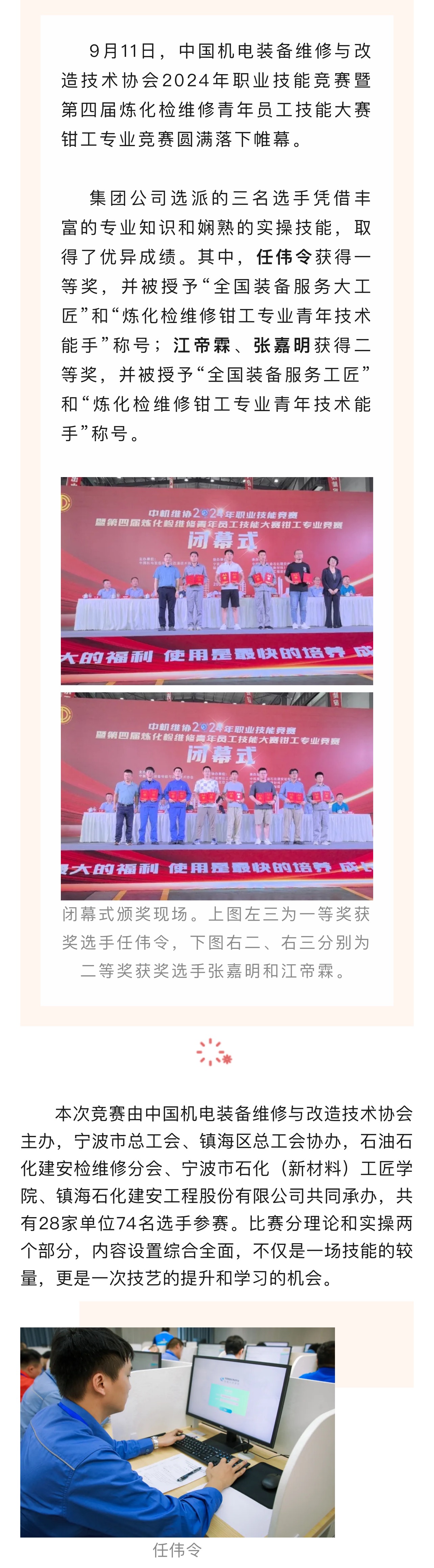 喜報:集團公司在中機維協(xié)2024年職業(yè)技能競賽暨第四屆煉化檢維修青年員工技能大賽