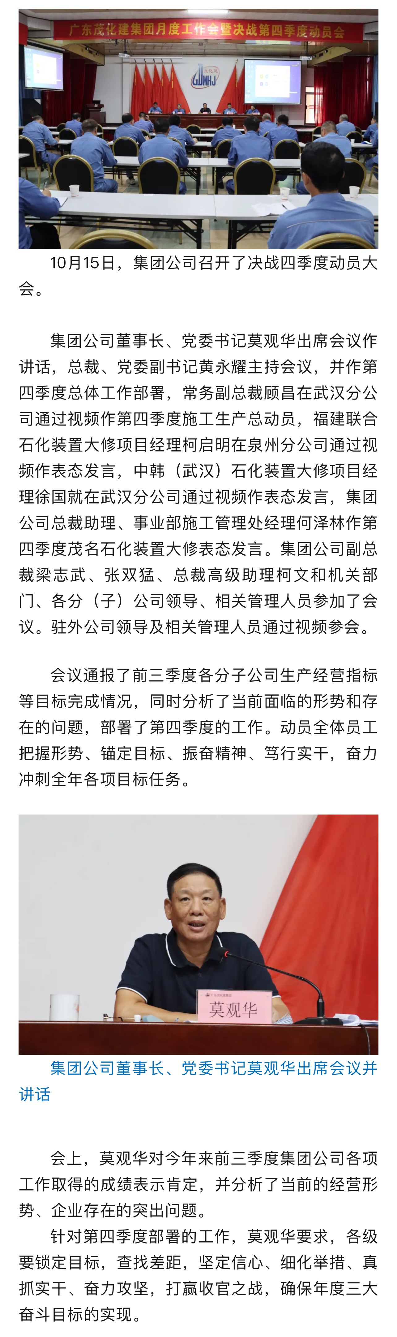 決戰(zhàn)決勝四季度 沖刺全年奮斗目標——集團公司召開決戰(zhàn)第四季度動員大會