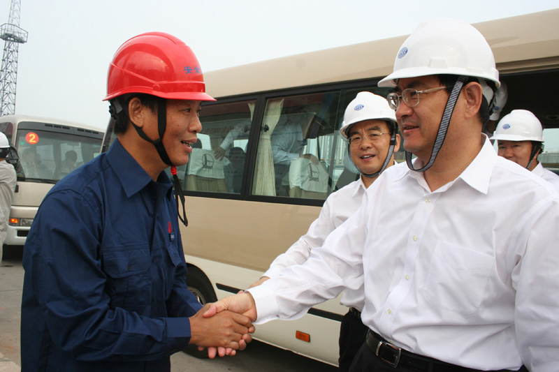 2011年11月17日,中國石化總經(jīng)理、股份公司總裁王天普、安全環(huán)保局局長王強、茂名石化總經(jīng)理余夕志等一行視察看了茂化建承擔施工的1000萬噸/年常減壓工程建設情況