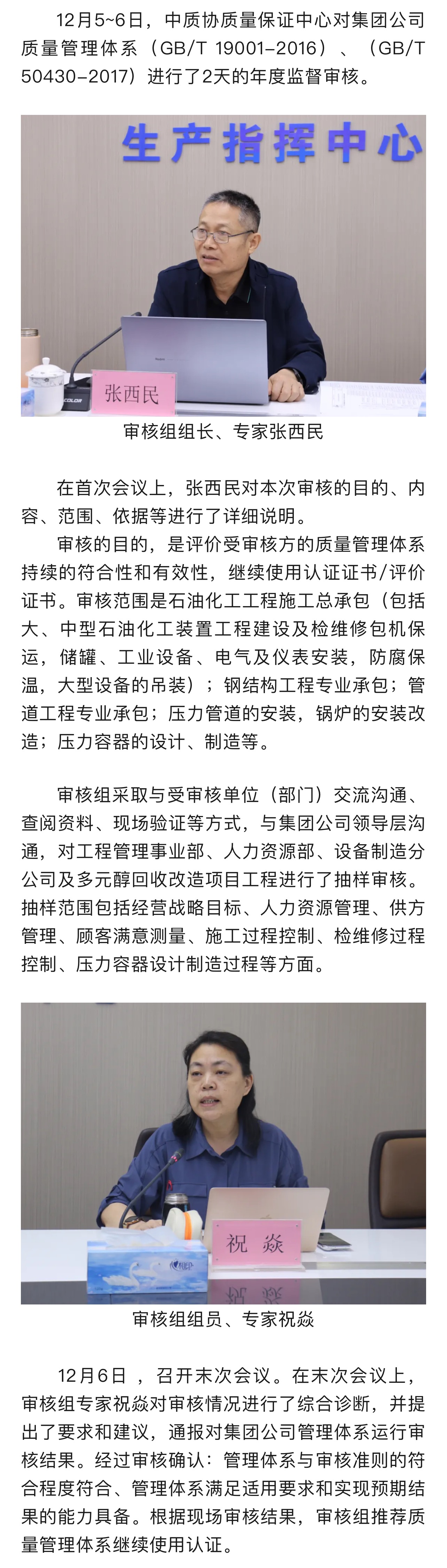 集團公司通過質(zhì)量管理體系年度監(jiān)督審核