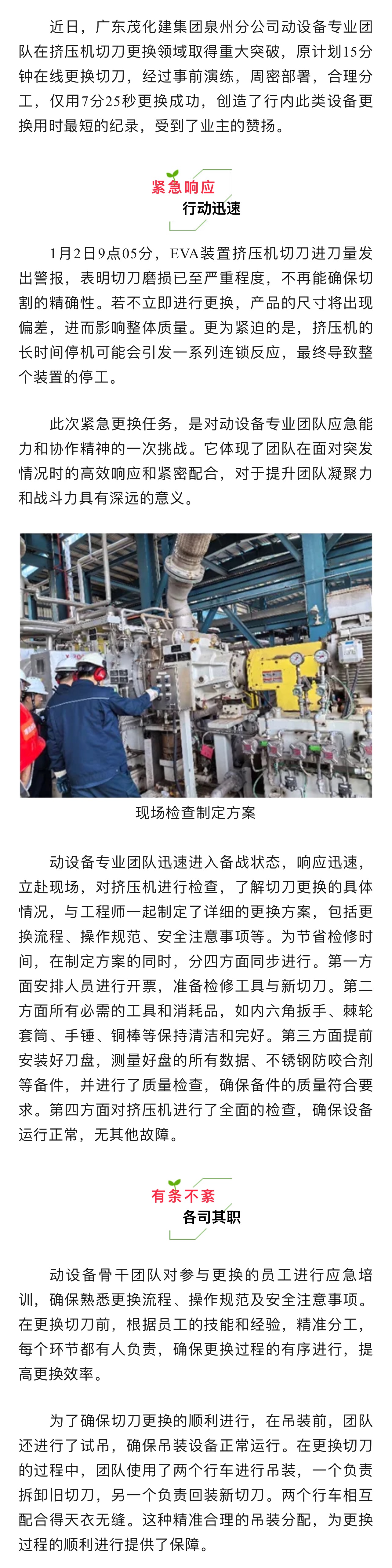 超棒!泉州動設(shè)備團(tuán)隊 | 7分25秒成功在線更換擠壓機切刀