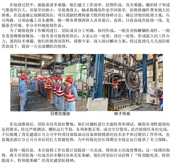 中科煉化催化裂化煙機搶修紀實