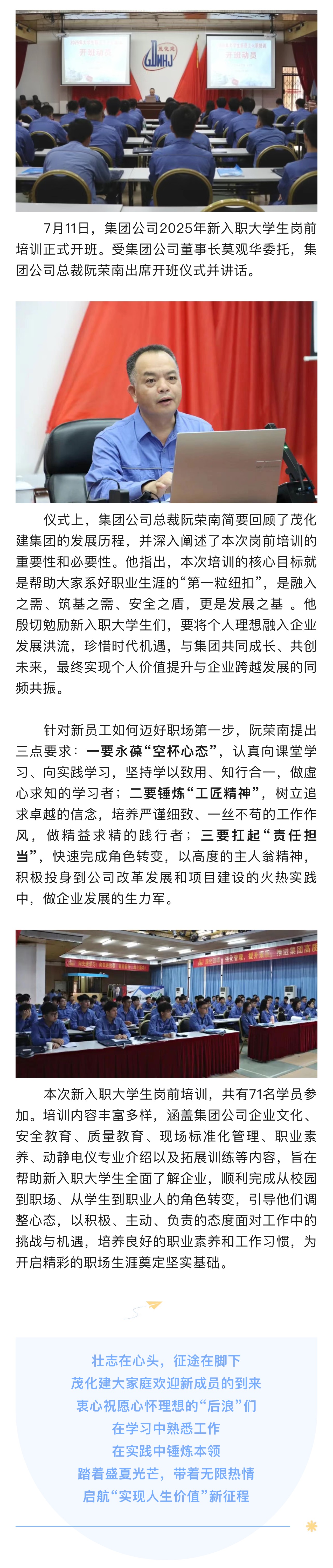 萌新報(bào)到!廣東茂化建集團(tuán)2025年新入職大學(xué)生崗前培訓(xùn)正式開班