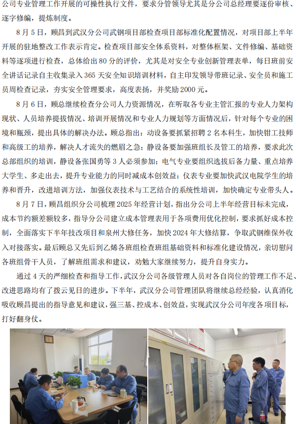 顧昌到武漢分公司檢查三大體系運行情況