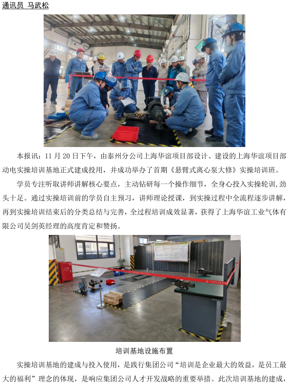 泰州分公司上海華誼項目部實操培訓(xùn)基地建成開班